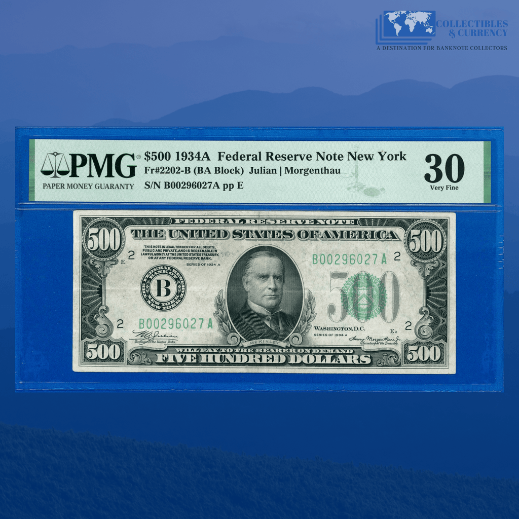 Fr.2202-B 1934A $500 Five Hundred Dollars FRN New York, PMG 30