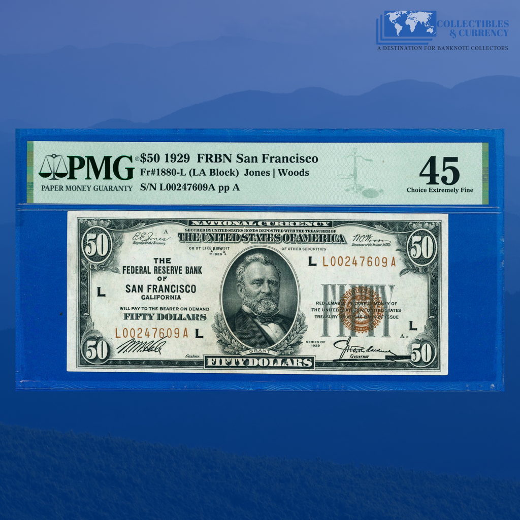 Fr.1880-L 1929 $50 Fifty Dollars FRBN San Francisco, PMG 45