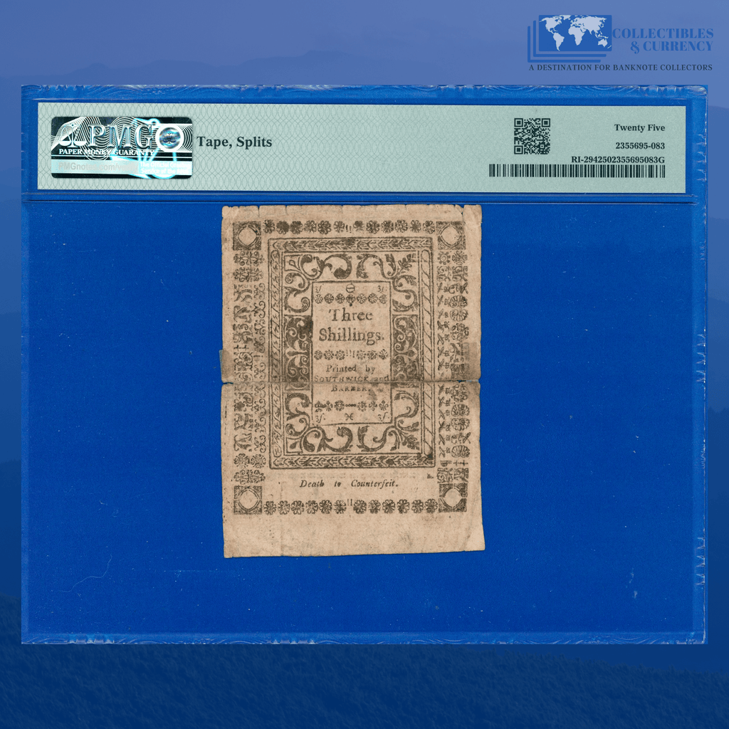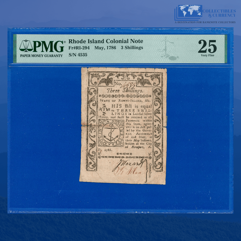 RI-294 Rhode Island May 1786 3 Shillings Colonial Currency, PMG 25 Comment