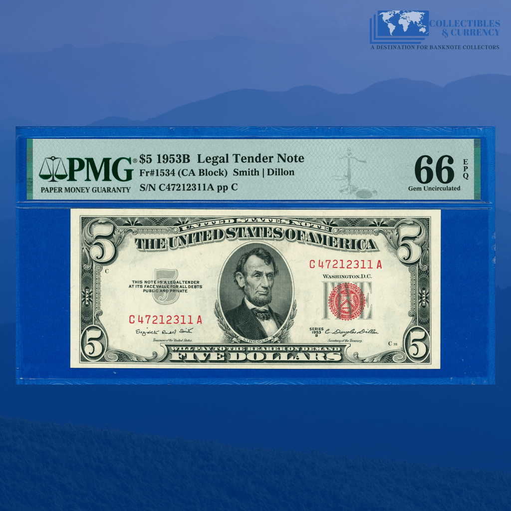 Fr.1534 1953B $5 Five Dollars Legal Tender Note, C/A Block, PMG 66 EPQ