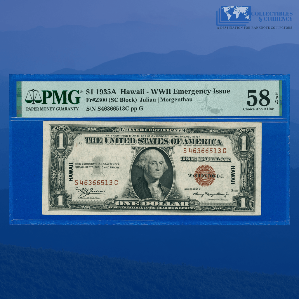 Fr.2300 1935A $1 Silver Certificate Brown Seal "HAWAII", S/C Block, PMG 58 EPQ