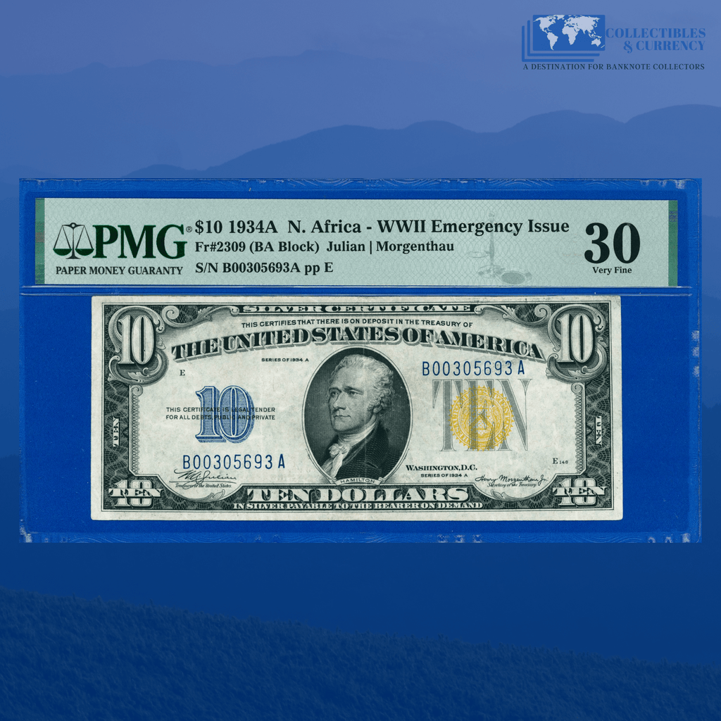 Fr.2309 1934A $10 Silver Certificate Yellow Seal "North Africa", PMG 30