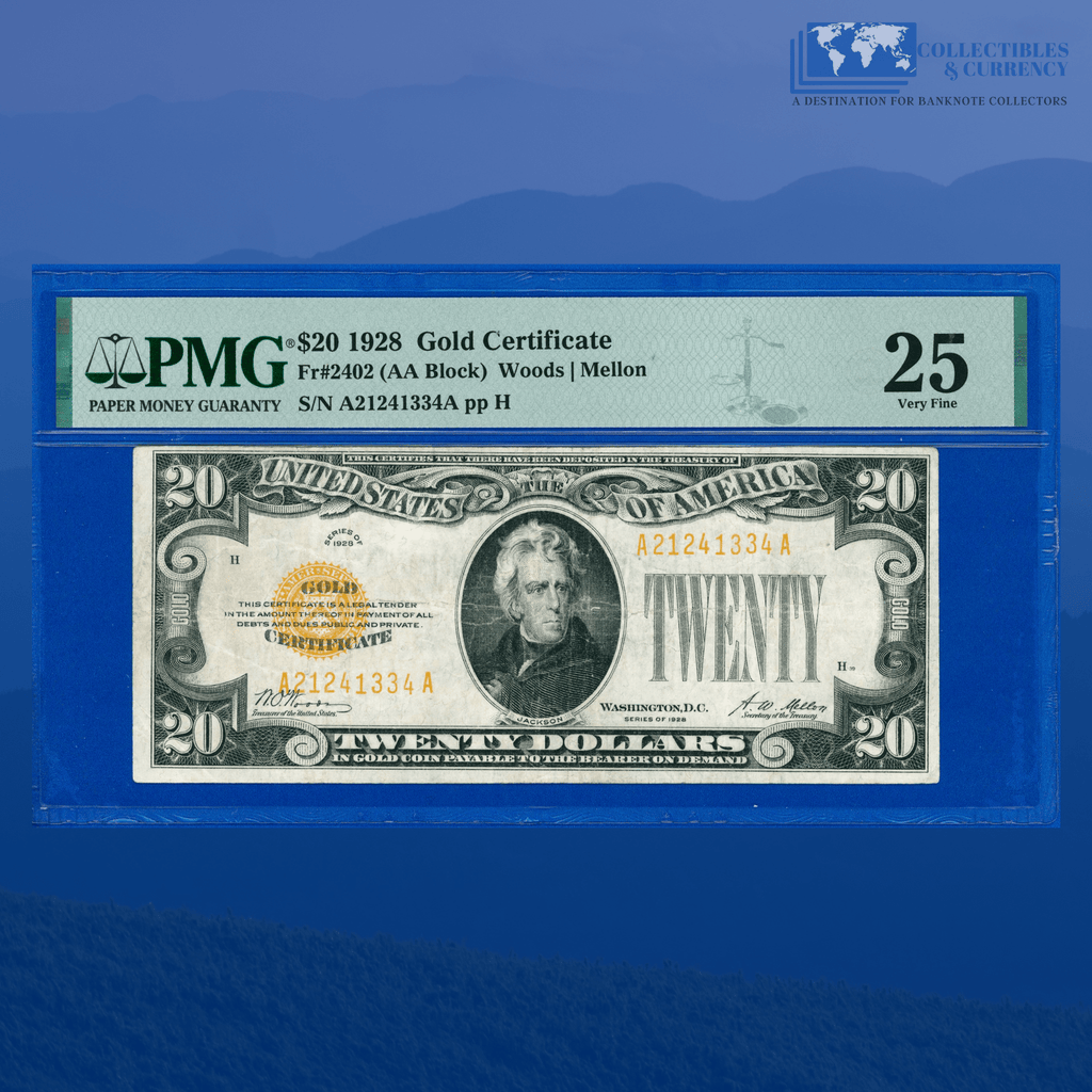 Fr.2402 1928 $20 Twenty Dollars Gold Certificate, PMG 25