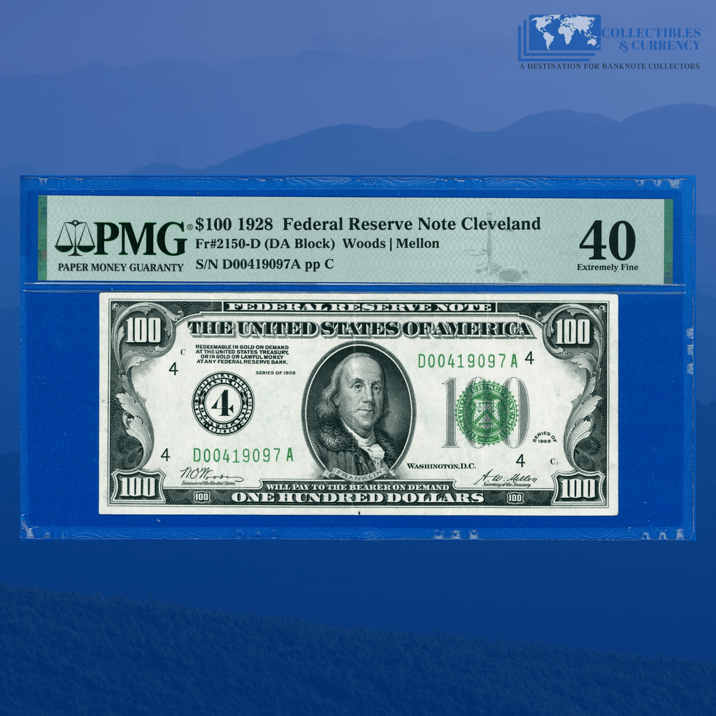 Fr.2150-D 1928 $100 One Hundred Dollars FRN Cleveland, Numerical Seal, PMG 40