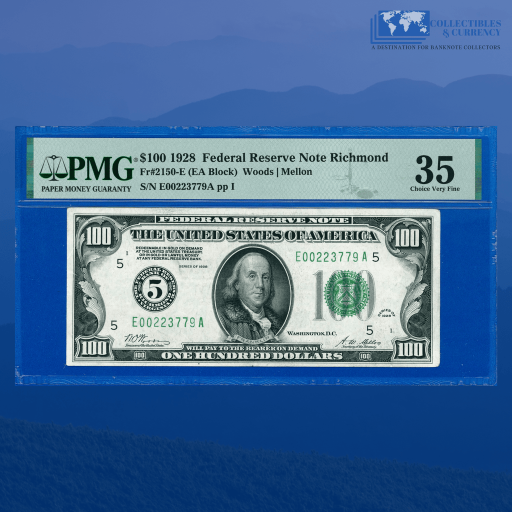 Fr.2150-E 1928 $100 One Hundred Dollars FRN Richmond, Numerical Seal, PMG 35